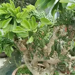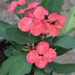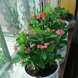 虎刺梅:别称铁海棠,是蔓生灌木植物。茎多分枝,长60-100厘米,直径5-10毫米,具纵棱,密生硬…
