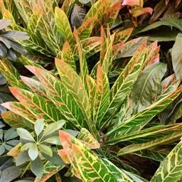 变叶木 Rumph. ex A. Juss.)是大戟科灌木或小乔木,高可达2米。枝条无毛。叶薄革质,…