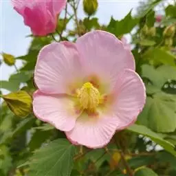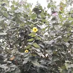 海滨木槿是锦葵科木槿属植物,落叶小乔木,株高3-5米,胸径20厘米,扁球形树冠,枝叶繁盛。…