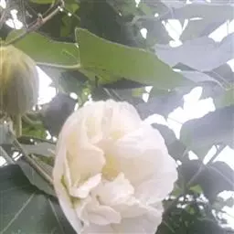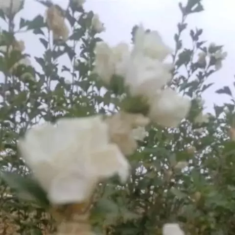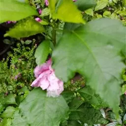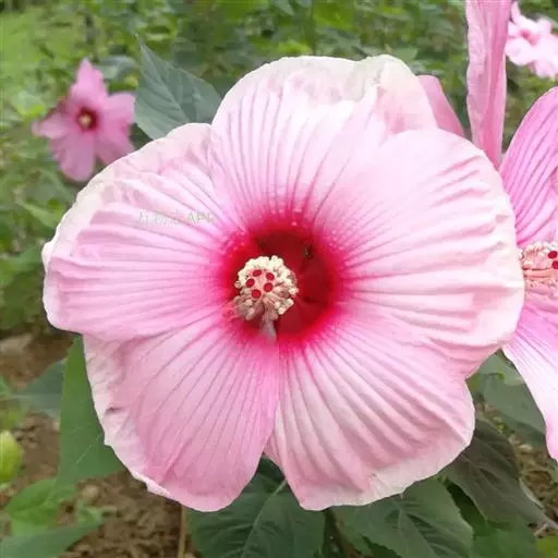 落叶灌木状。叶大、广卵形,叶柄、叶背密生灰色星状毛。花大,单生于叶腋,有白、粉、红、紫等色。