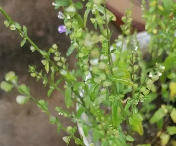 性状:半枝莲长15~55厘米,无毛或者花轴上有稀疏的被毛;根较为纤细;茎细丛生,呈方柱形;表面暗紫色或棕绿色;叶对生,有短柄;叶片多皱缩,展平后呈三角状卵形或披针形,长1.5~3厘米,宽0.5~1厘米;先端钝,基部宽楔形,全缘或有少数不明显的钝齿;上表面暗绿色,下表面灰绿色。花单生于茎枝上部叶腋,花萼裂片钝或较圆;花冠二唇形,棕黄色或浅蓝紫色,长约1.2厘米,被毛。果实扁球形,浅棕色。气微,味微苦。