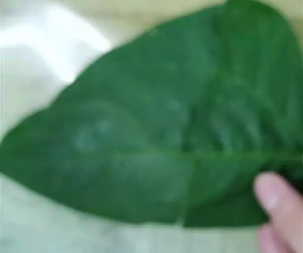 叶片卵形或近圆形,长3-9厘米,宽2-8厘米,顶端渐尖,基部微心形或圆形,下延成柄,全缘,背面叶脉微凸起;叶柄长1-3厘米,上有凹槽。