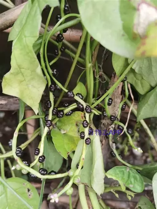 落葵 一年生缠绕草本。茎长可达数米,无毛,肉质,绿色或略带紫红色。