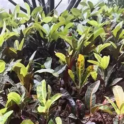 变叶木5-10月生长期,应给予较充足的水分,每天向叶面及地面喷水,以保持较高的空气湿度和叶面光洁。秋末及冬季逐渐减少浇水量,但要注意向叶面喷水,保持室内空气潮湿,并适当通风。