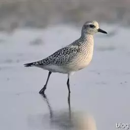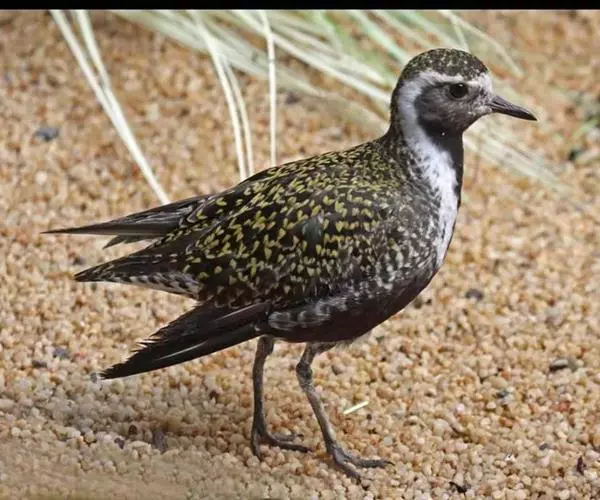 金鸻(学名:Pluvialis fulva):属中型涉禽。体重98-140克,体长230-252毫米。夏季全身羽毛大都呈黑色,背上有金黄色斑纹。翅膀又尖又长,飞行能力很强,秋天迁徒飞到很远的地方去越冬。跗蹠修长,胫下部亦裸出。中趾最长,趾间具蹼或不具蹼,后趾形小或退化。翅形尖长,第1枚初级飞羽退化,形狭窄,甚短小;第2枚初级飞羽较第3枚长或者等长。三级飞羽特长。尾形短圆,尾羽12枚。