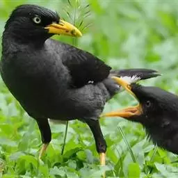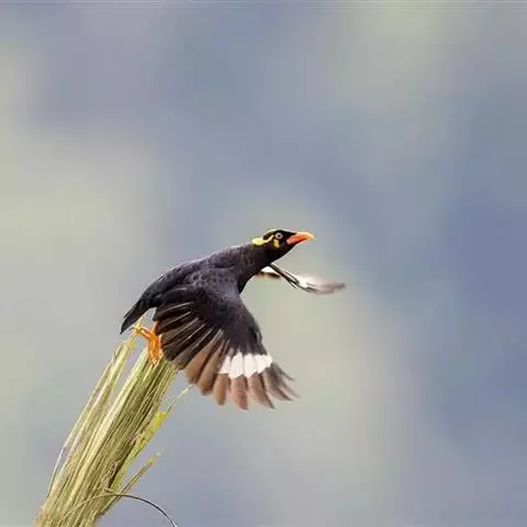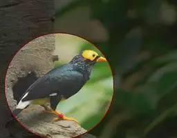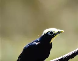 金冠树八哥为椋鸟科树八哥属的鸟类。体长约23厘米,闪辉黑色。特征为具翼斑及颏黄色,脸颊裸露皮肤粉黄色。…