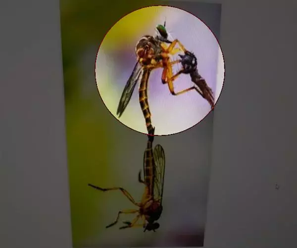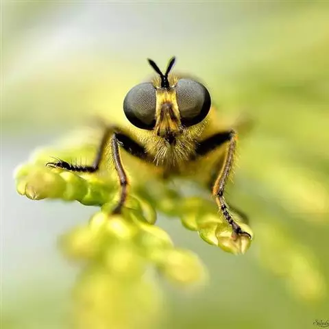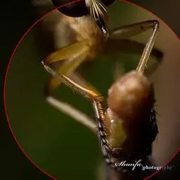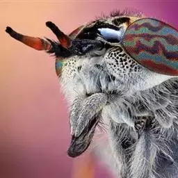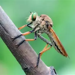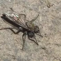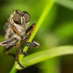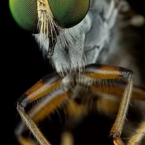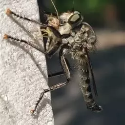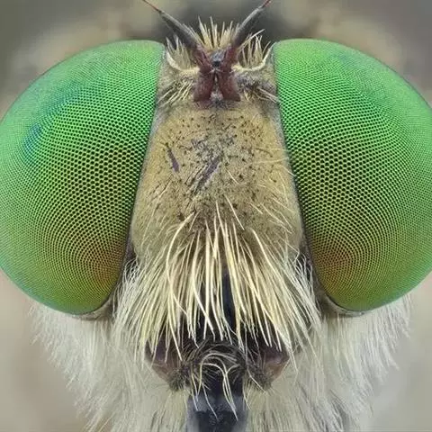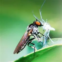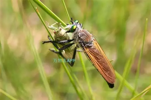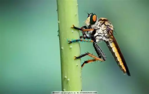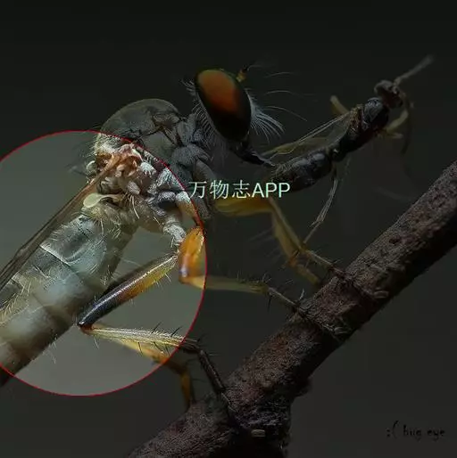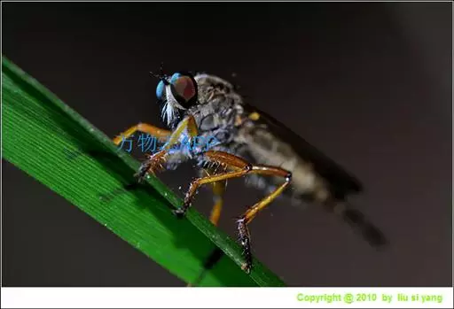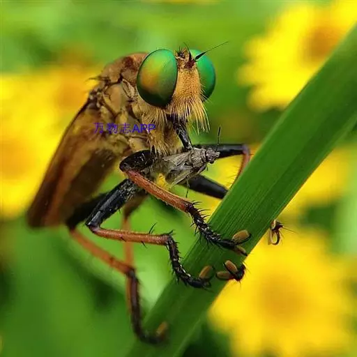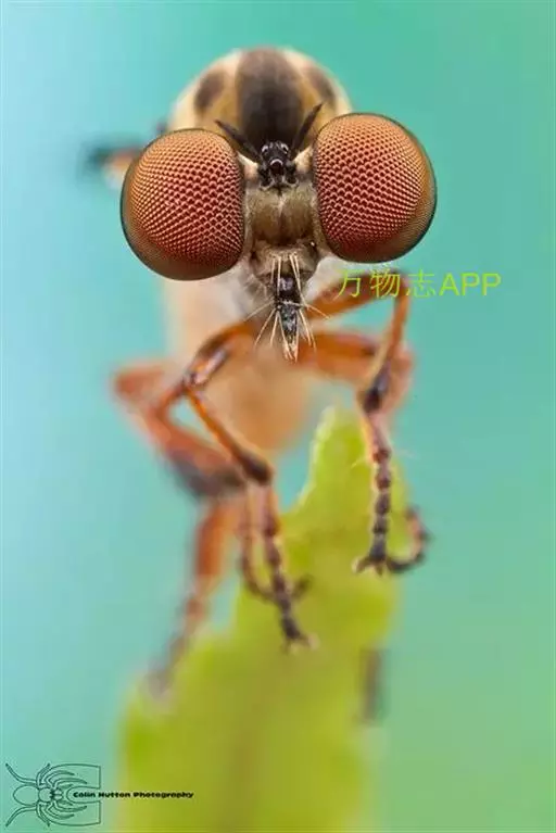 牛虻虫 食虫虻除了身体强壮、飞行快外,还得有良好的信息接收系统,即视力要好。它具有大而亮的大眼睛。视力如此重要,强大的保护是必须的。为了防止猎物挣扎而损伤眼睛,食虫虻复眼的周围特别在前方长有众多粗大的刚毛,就是为了保护眼睛不被伤害。捕捉到猎物后,它们用消化液注入到猎物中,把猎物消化成液体后再吸入。