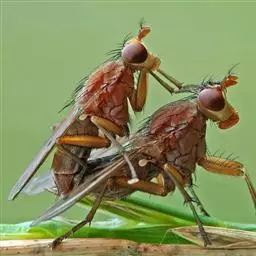 牛虻虫 一、种虻来源:一般初养者以捕捉野生虻为主, 虻的活动季节依地区及种类的不同而异。中国南方地区一般为4~10月份,北方地区为5~8月份。但以6~8月份最多,成虻(雌)吸血,喜在强烈阳光下, 以中午为最活跃,雄虻不吸血,以吸取植物的汁液生活,生活在草丛及树林中,捕捉时, 用事先做好的扣网到草场上的牛马群中进行捕捉(雌), 雄虻可到牛马群附近的草丛及树林中捕捉,之后收集, 虻的雌雄可通过复眼来签别:雄虻的复眼为接眼式,即两眼在中缘相接触,雌虻为高眼式,两眼间有明显的距离。