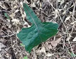 茎直立,单生,上部圆锥状花序分枝,全部茎枝白色。基生叶及下部茎叶大,不分裂,倒披针形、椭圆形或椭圆状倒披针形,长6-15厘米,宽1.5-6.5厘米,顶端急尖、短渐尖或圆形,无柄,基部心形或箭头状半抱茎,边缘波状或有细锯齿,向上的渐小,与基生叶及下部茎叶同形或披针形,圆锥花序分枝下部的叶及圆锥花序分枝上的叶极小,卵状心形,无柄,基部心形或箭头状抱茎,边缘全缘,全部叶两面无毛 。