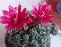 绯花玉 Speg.)是仙人掌科、裸萼球属多肉植物,植株呈扁球形,表皮墨绿色,刺针状,…
