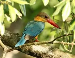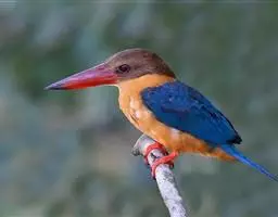 棕胸佛法僧是佛法僧科佛法僧属中型鸟类,体长32~35厘米。黑色的嘴细而下弯。头顶暗蓝色,…