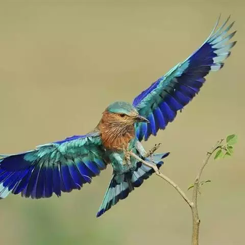 蓝胸佛法僧中型鸟类,体长31~33厘米,通体淡蓝绿色。翅膀长而宽,除栗色背羽外大部分为蓝色。…