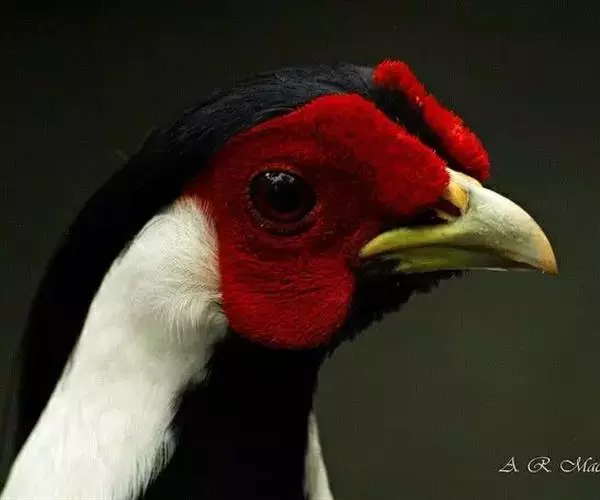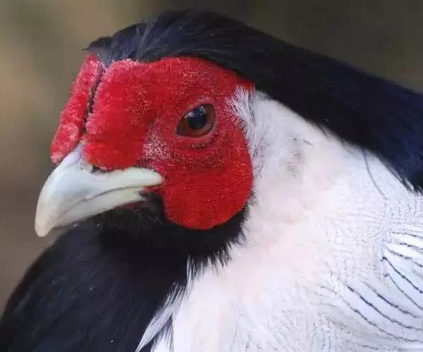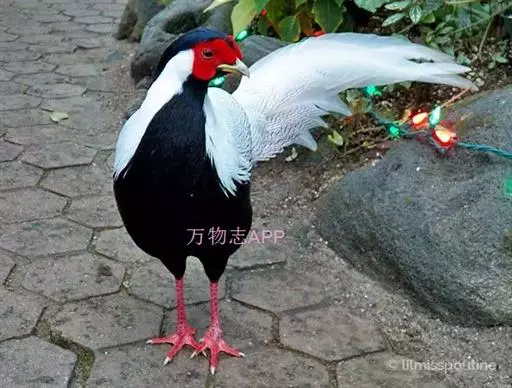 头上羽冠及下体蓝黑色;脸裸露,赤红色。上体和两翅白色,自后颈或上背起密布近似‘V’字形的黑纹;黑纹的多寡,粗细以及显著与否随亚种而不同。尾甚上,白色,尾的长短、其上有无黑纹、黑纹的多少,亦随亚种而不同,是亚种的另一鉴别特征之一。 雄鸟羽色不同于其他雉类的绚丽华美,而是一身银装素裹。它的头上具有长而厚密,状如发丝的黑色羽冠,并披于头后;脸部裸出,呈鲜红色;整个下体都是乌黑色;上体和身体后面长长的尾羽,都是洁白的衬底上密布着细细的“V”字形黑纹。尤为别致的是,尾羽上的黑纹越向后越小,逐渐消失。