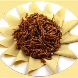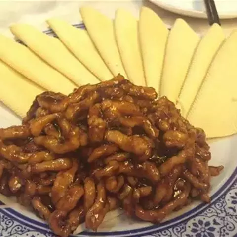 京酱肉丝,是一道知名度很高的菜肴,它是北京菜中的经典代表菜之一。制作时选用猪瘦肉为主料,辅以甜面酱…