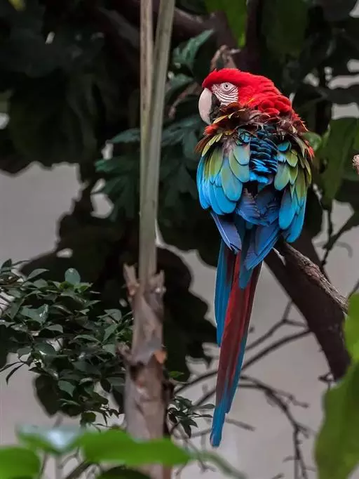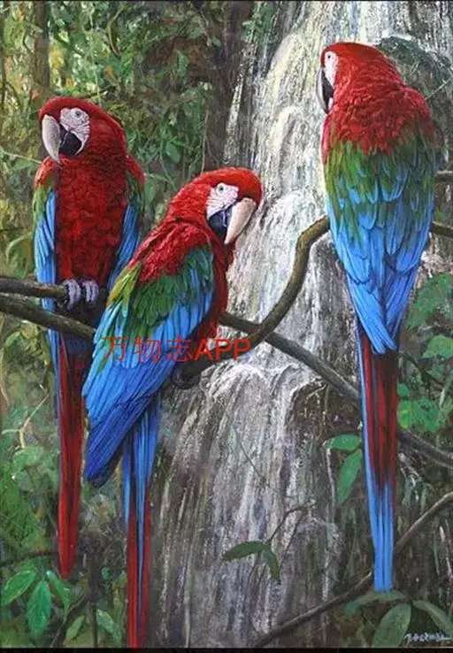 红额金刚鹦鹉:是鸟纲、鹦鹉科的攀禽。体格壮硕强健,体长55-60厘米,平均翼展为81.28厘米,…