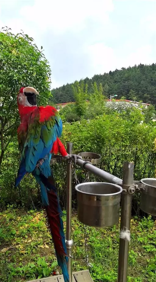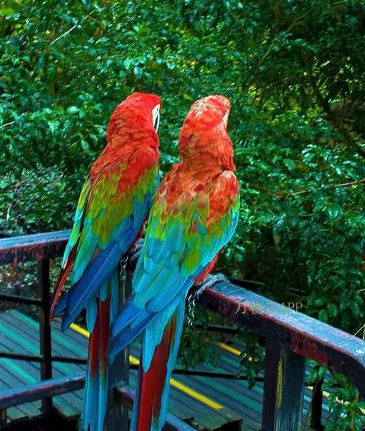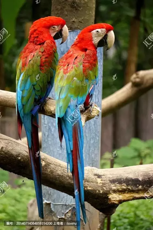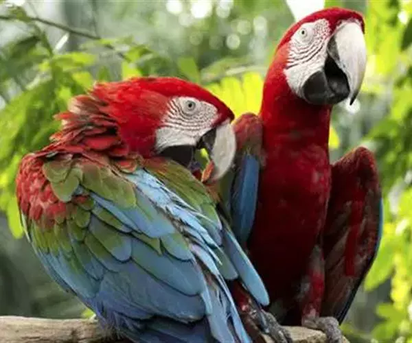 红绿金刚鹦鹉(学名:Ara chloropterus):是鹦鹉科、金刚鹦鹉属的大型攀禽。体长90-95厘米,翼展125厘米,体重1050-1700克,寿命80年。成鸟的头、颈部、胸部和翕两侧是美丽的红色羽毛。肩和三级飞羽绿色。背部,臀部和尾巴上面是蓝色。尾巴是红色和蓝色相间。尾覆羽浅蓝色。下颚骨的上层主要是白色或象牙色,较低的下颌骨黑色。面颊是裸露的皮肤,覆盖着红白色的羽毛呈现蛇状细纹。虹膜淡黄色。脚黑色。