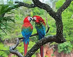 红绿金刚鹦鹉 红绿金刚鹦鹉通常生活在北部热带森林,在海拔450-1400米之间的高度可以发现它们的踪迹。通常会避开定期被淹没的沼泽地区和雨林,而将这种湿地栖息地留给了其同属近亲的蓝金刚鹦鹉。在山脉的南部和东部,它占据了更多的林地,包括沿河的落叶林或长廊林。喜欢飞生活在开阔地带。生存和分布在很大程度上取决于作为筑巢地点主要提供者的大树和岩石峭壁的存在。另一方面,红绿金刚鹦鹉会远离城镇、村庄和人类所有居住地,因为它们是密集狩猎的受害者,并且经常被捕以从事鸟类交易。这种鹦鹉大部分时间都生活在海拔1000米以下的地方。在委内瑞拉可以上升到1400米。