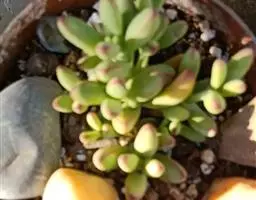 红数珠是景天科青锁龙属植物,叶片对生,叶片长圆型,叶片肥厚。叶片表面有不规则凸起的白色颗粒,…