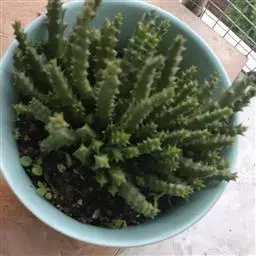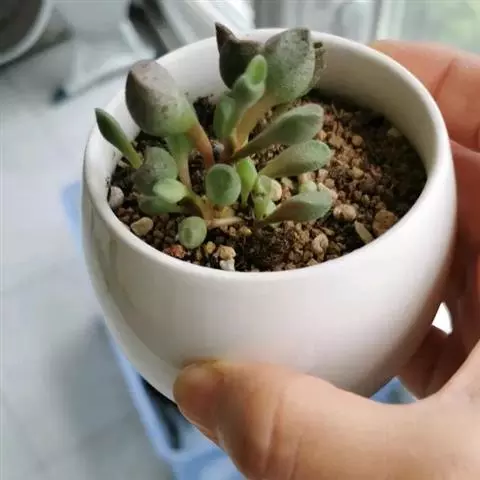 天狗之舞繁殖一般就是砍头,取健康有生长点的枝条,按照3至5厘米高左右一段剪下,晾干伤口扦插,也可以直接扦插在干的颗粒土中,几天后少量给水,是非常好繁殖的一个品种,叶片和叶片间容易长出很多小根。碰到合适的土壤就会把根牢牢扎在土里。砍头繁殖还有一个好处就是可以让母株得到更好的造型,有心的花友可以尝试尝试,砍头后的地方会重新萌发新的生长点,有的会萌发2个枝条。