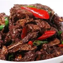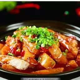 4、将豆腐放入锅中,翻炒,加清水,盐,炖至水快烧干,加白糖,味精,湿淀粉旺火收汁,撒上胡椒粉,即可出锅