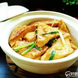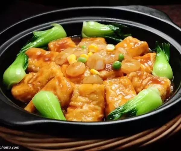 豆腐煲是一道美味可口的名肴,属于粤菜系。主料:北豆腐、蟹味菇、瑶柱、鲜茶树菇