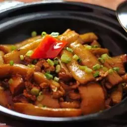 5.用中火再烧10分钟至入味,调入1/2茶匙盐;最后用水淀粉勾芡即可。