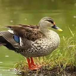 斑嘴鸭是雁形目鸭科鸭属鸟类。李文华,旭日干,中国自然资源通典 辽宁卷,内蒙古教育出版社,2015,第361页雄鸟体羽大部棕褐色;嘴蓝黑色,先端黄色,嘴基至耳区贯眼线黑褐色;虹膜黑褐色,外圈橙黄色;眉纹黄白色,头顶、额、枕部暗棕褐色;上背灰褐色,下背褐色;翼镜蓝绿色带紫色金属光泽;胸部棕白色杂褐色斑,腹褐色;腰、尾上覆羽、尾羽黑褐色,尾下覆羽黑色;跗蹠和趾棕黄色,爪黑色。雌鸟嘴端黄斑不明显,下体自胸以下淡白色,杂暗色斑。因嘴端有黄斑而得名。斑嘴鸭分布于中国各省区,栖息于河流、湖泊、水塘及沼泽等湿地中。善游泳、行走,游泳时尾露出水面,除繁殖期外,常成群活动,也和其他鸭类混群。主食植物的种子、嫩芽和幼苗等植物性食物,也食昆虫、软体动物等动物性食物。繁殖期5—7月,以干草和绒羽在岸边草丛中做巢,1年繁殖1窝,每窝产卵8—14枚,孵化期24天。斑嘴鸭被列入中国国家林业局2000年8月1日发布的《国
