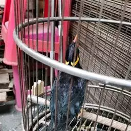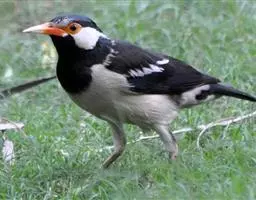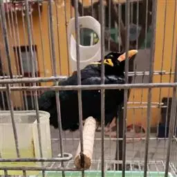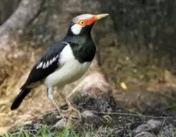 金冠树八哥为椋鸟科树八哥属的鸟类。体长约23厘米,闪辉黑色。特征为具翼斑及颏黄色,脸颊裸露皮肤粉黄色。…