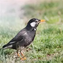 斑椋鸟:是中等体型的黑白色椋鸟,体长24厘米。头顶、头侧、翼斑、腰及腹部白色,喉、胸及上体余部黑色,…