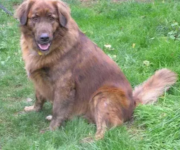 体高65~80厘米,体重大约40~60千克。头部与躯体相称,鼻子黑色,经常淌着口水。耳朵宽圆而下垂,眼神严肃且凶悍,尾巴有长长的饰毛并微微上扬呈旗状。体毛粗糙、松散,颈部和足部有羽毛状饰毛;毛色有淡黄色、金黄色、红棕色,还有银灰色和白色。