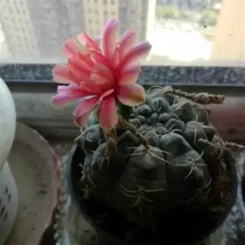 绯花玉 Speg.)是仙人掌科、裸萼球属多肉植物,植株呈扁球形,表皮墨绿色,刺针状,…