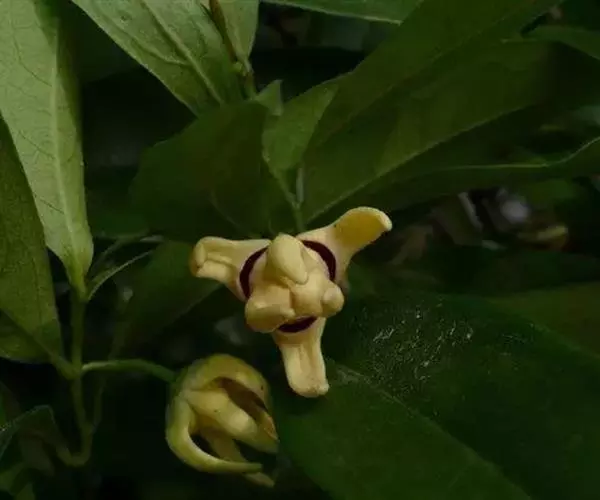 攀援灌木,长达6米;小枝被黄色粗毛。叶革质,椭圆状长圆形至长圆形,长6-12厘米,宽2.5-4厘米,顶端急尖或钝,基部近圆形或稍偏斜,两面无毛,或仅在下面中脉上被疏柔毛,叶面有光泽;侧脉每边8-10条,两面均凸起,远离边缘而联结,网脉疏散,明显;叶柄长2-5毫米,被疏柔毛。花单生;花梗稍长于钩状的总花梗,被疏柔毛;萼片三角形,长约3毫米,近无毛;花瓣卵状披针形,长10-18毫米,基部卵形,凹陷,外轮花瓣密被丝质柔毛,厚质,内轮花瓣长10-12毫米;雄蕊楔形,药隔三角形,顶端隆起,被短柔毛;心皮卵状长圆形,无毛,每心皮有胚珠2颗,基生,柱头短棍棒状。果椭圆状,长2-3.5厘米,直径1.5-3厘米,干时黑色。花期4-7月,果期5-12月。
