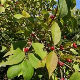 红果山胡椒(学名:Lindera erythrocarpa Makino)是樟科、山胡椒属落叶灌木或小乔木,高可达5米;树皮灰褐色,冬芽角锥形,叶互生,通常为倒披针形,偶有倒卵形,上面绿色,下面带绿苍白色,羽状脉,伞形花序着生于腋芽两侧各一,总苞片具缘毛,雄花花被片黄绿色,花丝无毛,雌花较小,花被片内、外轮近相等,椭圆形,子房狭椭圆形,花柱粗,果球形,熟时红色;花期4月,果期9-10月。