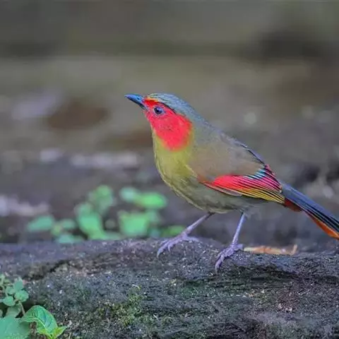 赤尾噪鹛中型鸟类,体长24~28厘米。头顶至后颈红棕色,两翅和尾鲜红色,眼先、眉纹、颊、颏和喉黑色,…