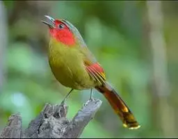 红头噪鹛中型鸟类,体长22~28厘米。头顶棕红色,眼先、脸、颏、喉黑色,上体橄榄色或棕橄榄褐色,…