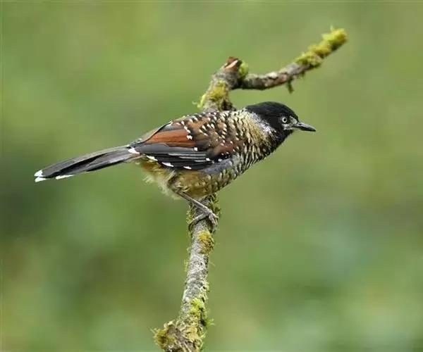 上体棕褐色,各羽均具黑色次端斑和白色或棕白色点状端斑,有时上背呈棕黄色具宽阔的黑色次端横斑。其余上体棕黑褐色具白色端斑,次级覆羽栗色具黑色次端横斑和棕白色端斑;内侧飞羽和覆羽与背同色。初级覆羽栗色具白色端斑和黑色次端斑,飞羽黑褐色具白色端斑,最外侧1-2枚初级飞羽内外翈均为黑褐色,其余飞羽外翈基部蓝灰色或灰色,向内逐渐扩大,然后逐渐变为棕褐色或栗色,到最内侧次级飞羽外翈几全为棕褐色或栗色,所有飞羽均具白色端斑。