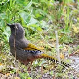 橙翅噪鹛:是噪鹛科、彩翼噪鹛属的中型鸟类,体长22-25厘米。头顶深葡萄灰色或沙褐色。上体灰橄榄褐色,…