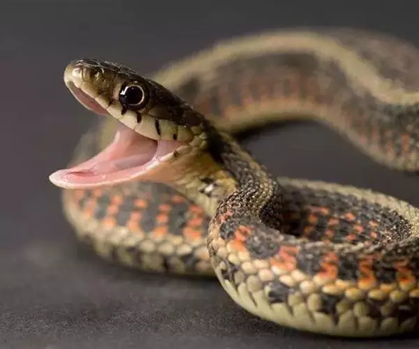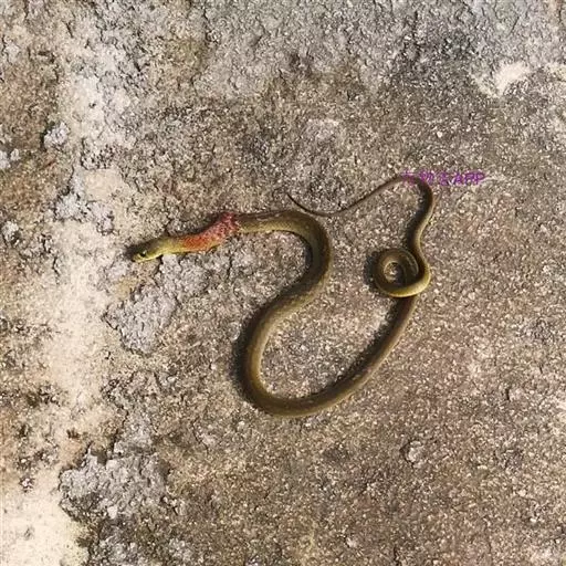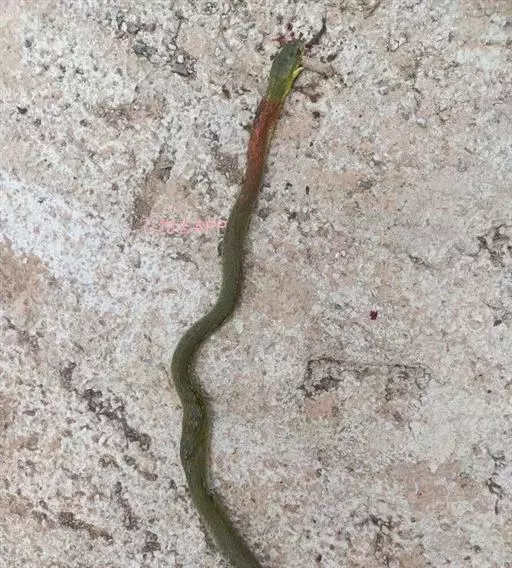 红脖游蛇属游蛇科游蛇属,毒牙无沟、无管,但呈利刃状似应称之为利牙。利牙类毒蛇的毒牙着生在口角内侧上颌的后端,毒牙短,且毒腺不发达,分泌量少,咬人时很难用毒牙咬到人体,除非被咬物被深深纳入口内,否则难以触及利牙,因此,通常不易造成中毒。该蛇的毒素为血液毒素,一旦进入人体即可引起血液失凝,完全脱纤维蛋白状态。