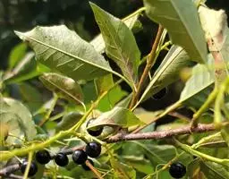 高盆樱桃是乔木,高3-10米;枝幼时绿色,被短柔毛,不久脱落;老枝灰黑色,叶片卵状披针形或长圆披针形,长(4)-8-12厘米,宽(2.2-)3.2-4.8厘米,先端长渐尖,基部圆钝,叶边有细锐重锯齿或单锯齿,齿端有小头状腺,侧脉10-15对,上面深绿色,下面淡绿、无毛,网脉细密,近革质;叶柄长1.2-2厘米,先端有2-4腺;托叶线形,基部羽裂并有腺齿。