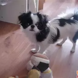 日本狆是极小型犬;被毛长而丰厚,不弯曲;毛色为白色底,带黑色或栗色斑块,…