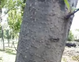 育苗:种子采回后,要及时播种,干藏一个月就丧失发芽力。育苗圃地应选择排水、灌溉条件良好的沙质壤土、黄泥沙土。深耕,使土细,床面平整。条播,播种沟宽5-8厘米,行距20厘米。播后薄覆焦泥灰和细土,以不见种子为准,再盖狼衣草或稻草。每亩播种量1千克左右。约7-10天发芽出土。幼苗生长期要做好松土、除草、间苗、补苗、抗旱等管理工作。迫肥早施,在7月上旬结束。苗木前期生长快,5-7月份苗高生长占全年生长量的72%,根径生长占全年生长量的57%。10约下旬停止生长,12月中、下旬落叶。一年生苗高1米,根径粗1.1米,每亩产苗量1.5-2万株。