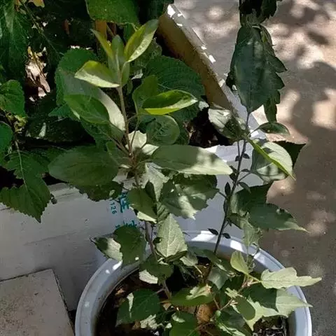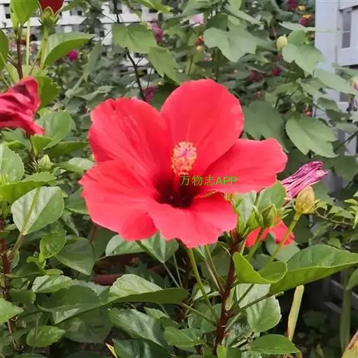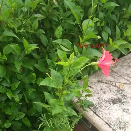 朱槿是常绿灌木,株高约1-3米;小枝圆柱形,疏被星状柔毛。叶阔卵形或狭卵形,长4-9厘米,宽2 5厘米,先端渐尖,基部圆形或楔形,边缘具粗齿或缺刻,两面除背面沿脉上有少许疏毛外均无毛;叶柄长5-20毫米,上面被长柔毛;托叶线形,长5-12毫米,被毛。