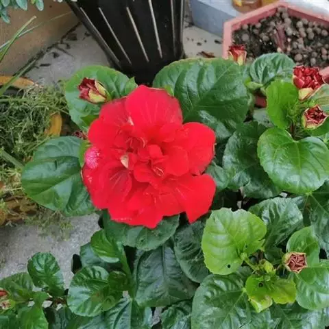 Hibiscus roses-sinensis Linn. var. rubro-plenus Sweet Hort.