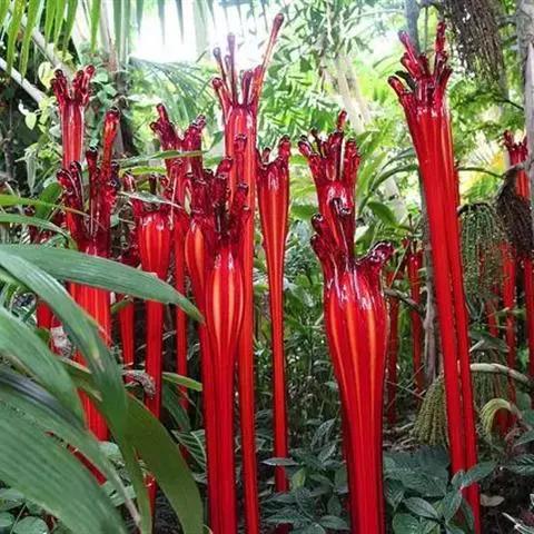 叶狭长,披针形,绿色,具白、粉、红色斑纹。花小,鲜红色。
