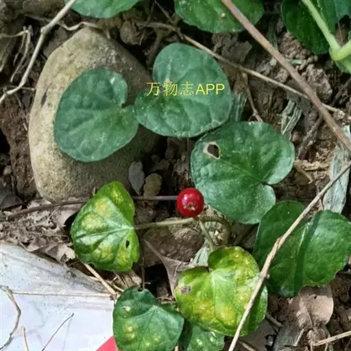 多年生、纤弱、匍匐草本,长可达40厘米或过之;茎下部的节上常生不定根。叶膜质,心状圆形至近圆形,直径约1-3厘米,顶端圆,基部心形,干时黄绿色,两面近无毛;叶脉掌状,5-8条;叶柄长1-5厘米,被伸展柔毛;托叶阔卵形,长1-2毫米。