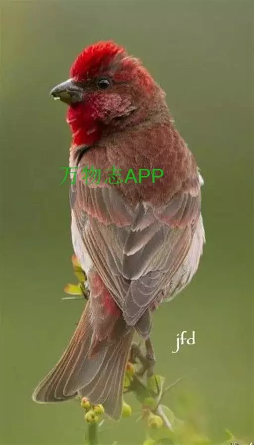北朱雀,是燕雀科朱雀属鸟类。雄鸟额和头顶前部珠白色具窄的粉红色羽缘,…