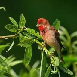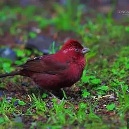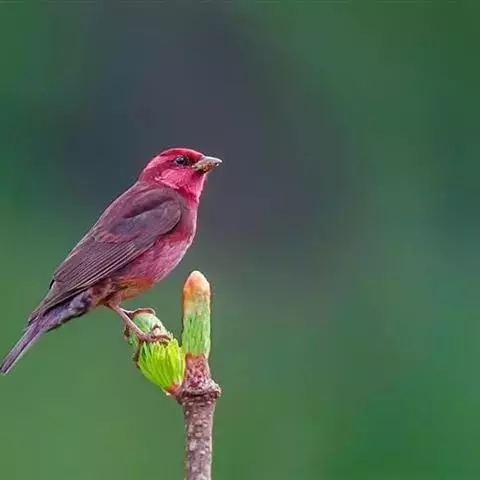 酒红朱雀小型鸟类,体长13~15厘米。雄鸟通体深红色,头部深朱红或棕红色,下背和腰玫瑰红色,…