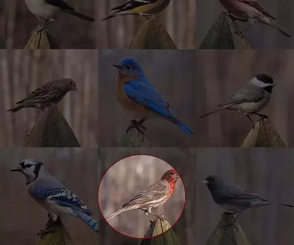 较其他朱雀色深;较点翅朱雀体小;较暗胸朱雀或曙红朱雀喉色深。雌鸟橄榄褐色而具深色纵纹;三级飞羽羽端浅皮黄色而有别于暗胸朱雀或赤朱雀。