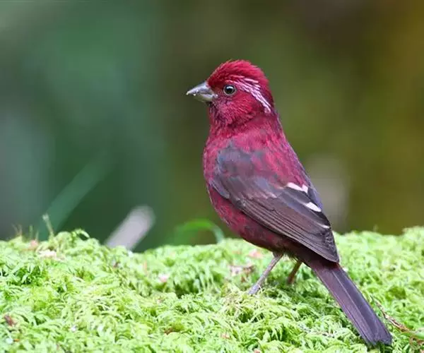 酒红朱雀(学名:Carpodacus vinaceus)小型鸟类,体长13~15厘米。雄鸟通体深红色,头部深朱红或棕红色,下背和腰玫瑰红色,眉纹粉红色而具丝绢光泽。两翅和尾黑褐或灰褐色、具暗红色狭缘,内侧两枚三级飞羽具淡粉红色先端。雌鸟上体淡棕褐色具黑褐色羽干纹,两翅和尾暗褐色,外翈羽缘淡棕色,最内侧两枚三级飞羽具棕白色端斑,下体淡褐或赭黄色、具窄的黑色羽干纹。该种特征明显,特别是通过上下体羽全为深红色和内侧两枚飞羽具粉红白色端斑,明显可以与其他朱雀区别开来。
