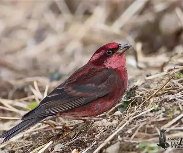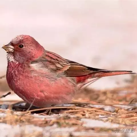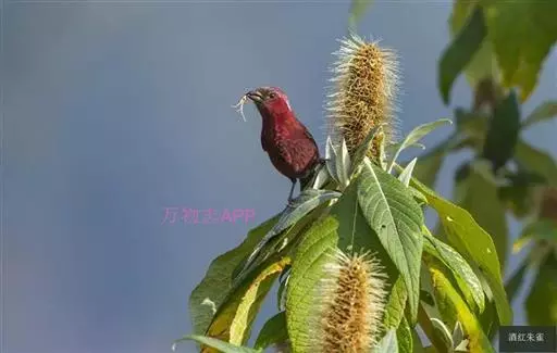 藏朱雀:全长约17-18厘米。雄鸟头部深红色具光辉,喉部暗红色具白色点斑;背部灰白色,各羽具玫瑰红…